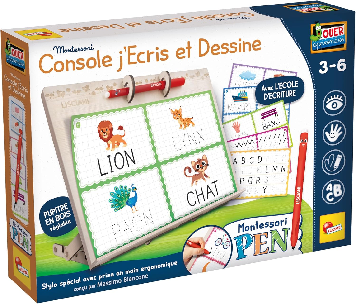 Designed for curious minds, the Lisciani Montessori Pen – J’écris et Je Dessine is a wooden educational desk that turns first letters into a sensory adventure. With an ergonomic pen and a rich set of alphabet, vocabulary and pre‑writing cards, children aged 3–6 trace, draw and discover at their own pace.