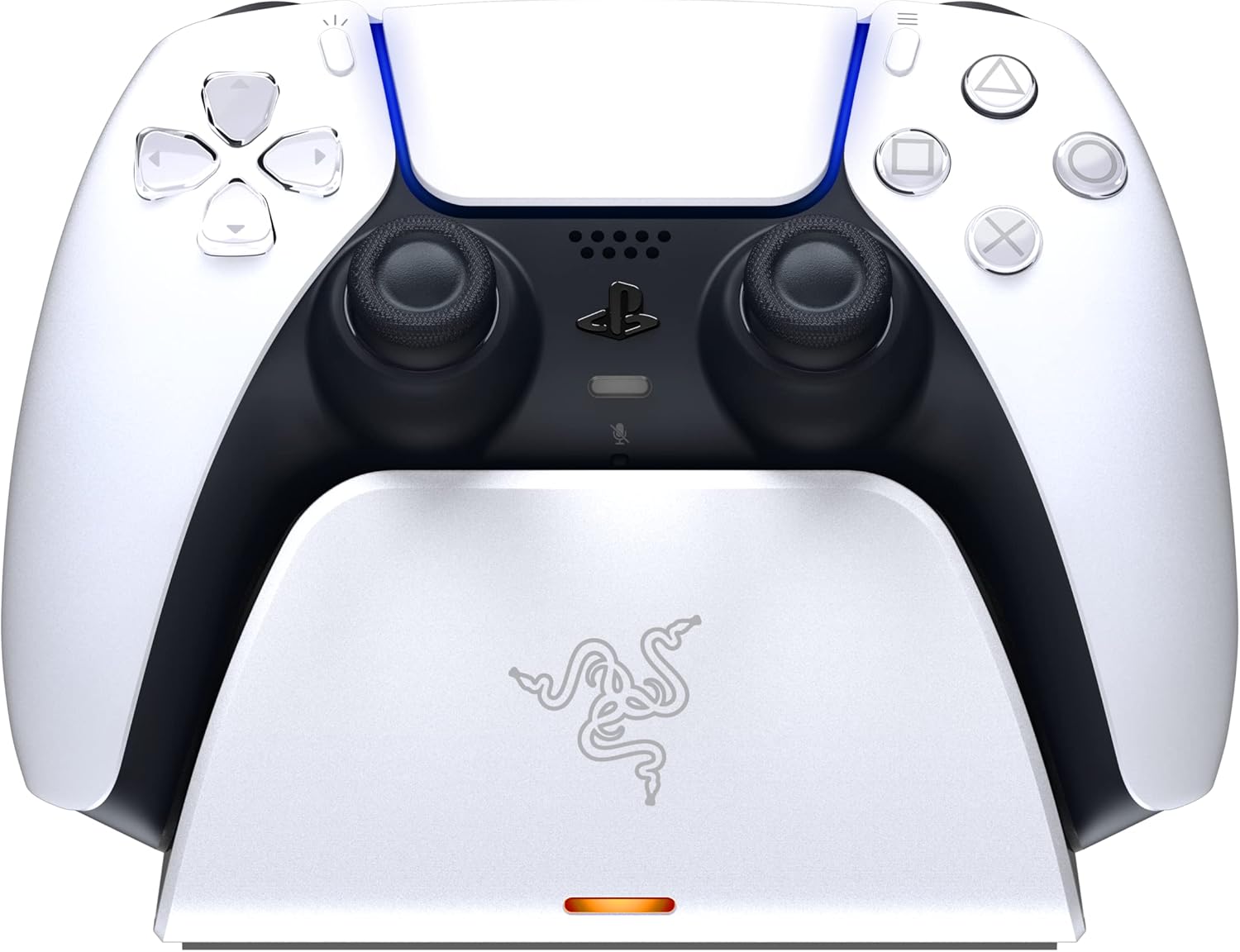 Fast USB-powered dock for DualSense. One-handed navigation, secure cradle, quick charge in a compact white design.