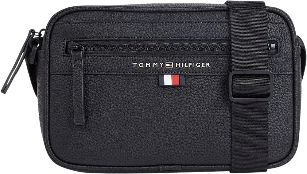 Compact black crossbody for men by Tommy Hilfiger. Secure storage and sleek style for daily essentials, travel or city commutes.
