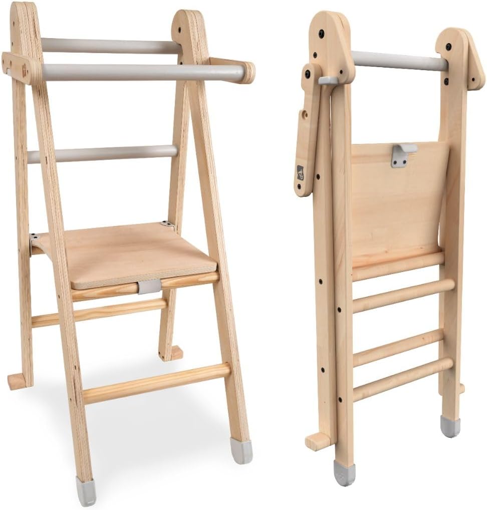 TP foldable Montessori learning tower in FSC wood, boosts kids’ independence and gives safe access to countertops at home.