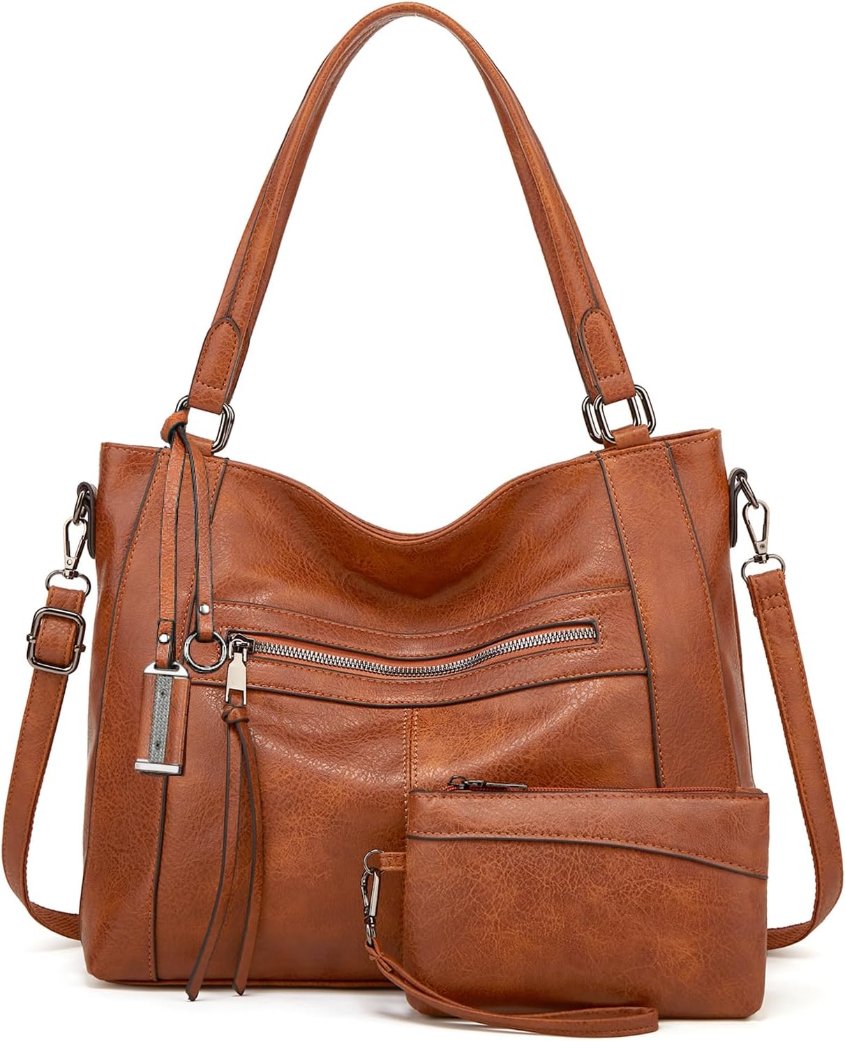 Ensemble sac hobo cabas en cuir PU avec portefeuille. Spacieux, durable et polyvalent pour travail, shopping, voyages et soirées.