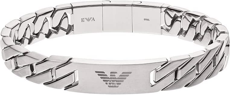 Bracelet homme Emporio Armani en acier inoxydable ou cuir, avec fermoir à maillons sécurisé et design raffiné.