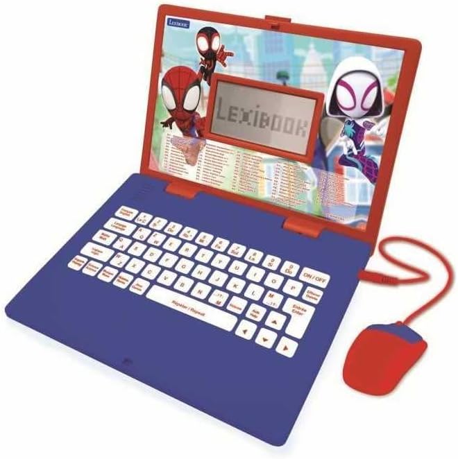 Découvrez l'ordinateur éducatif Lexibook Spider-Man, compagnon d'apprentissage bilingue FR/Anglais avec 124 activités. Son univers de super-héros et son design bleu/rouge captivent les enfants tout en travaillant lettres, chiffres, vocabulaire et logique.