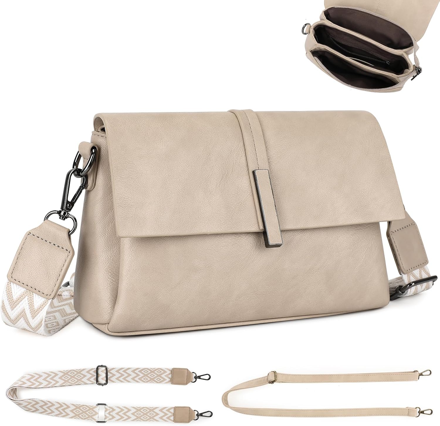 Sac VINBAGGE en cuir PU pour femme, 2 sangles réglables et amovibles. Porté croisé ou épaule, léger pour le travail, les sorties et les voyages.
